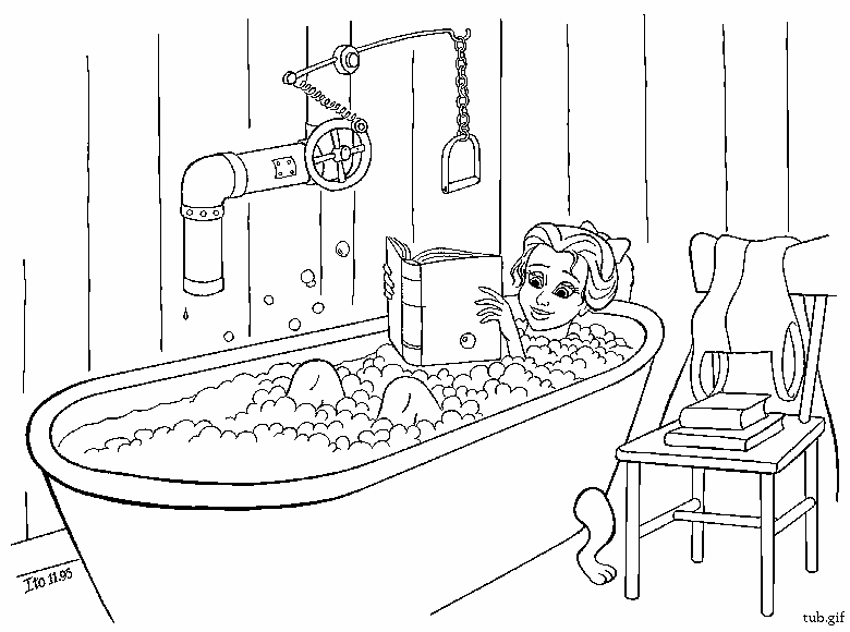 Once again we see one of Bob's favorite subjects, Belle, relaxing in a bubbly bathtub, and indulging in one of her favorite pastimes. Unfortunately, we cannot see the title of the book that she is reading. Knowing how interested she is in reading, it could be just about anything, but her expression on her face indicates that is must be good reading.